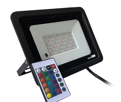 Elbat LED RGB 50 W spotlight – fjärrkontroll – IP65 – perfekt för utomhusbruk