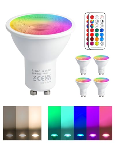 REYLAX 4pcs GU10 6W LED-Lampor, RGB + Varmvit, LED-Spotlight Med Färgbyte, 12 Färger 5 Lägen, Minnesaktivering, Dimning Med Infraröd Fjärrkontroll