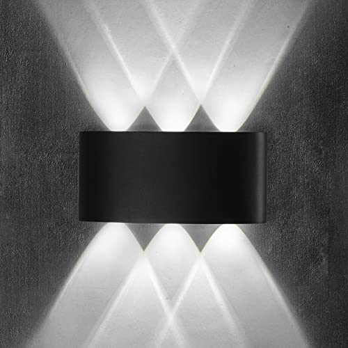 ZIKEY 6W LED vattentäta vägglampor, Modern vägglampa i aluminium, Kallvit ljus 6000K, upp och ner spotlight inomhus/utomhus vägglampa, AC 85-265V (svart)