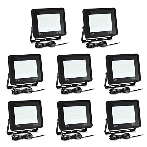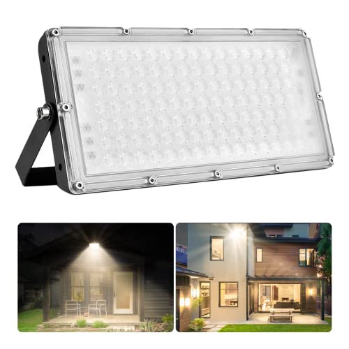 Treoir LED-spotlight Utomhus 50W 5000LM, 6000K, IP66 Vattentät Säkerhetsbelysning för Trädgård, Garage, Gård, Parkering (Kall Vit)