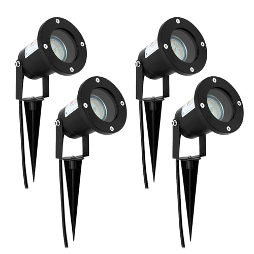 4 LED Utomhus Trädgårdsbelysning Vridbar GU10 IP65 Vattentät Spotlight Strålkastare Lampor Utomhus med Markspett 230 V Trädgårdslampa med Kabel
