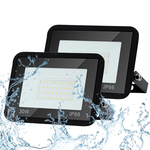 Sonnewelt Utomhus LED-projektor, 30 W, 2 550 lm, varmvit, 3 000 K, LED-spotlight, utomhus, energisparande, IP66, vattentätt säkerhetsljus för trädgård, uteplats, gård, garage