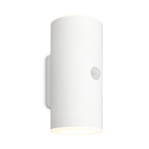 BRILONER - Uppladdningsbar LED-vägglampa med rörelsesensor, skymningssensor, 20 sek timer, LED-spotlight utomhus, 15,5 x 7 x 8,5 cm (hxb x d), vit
