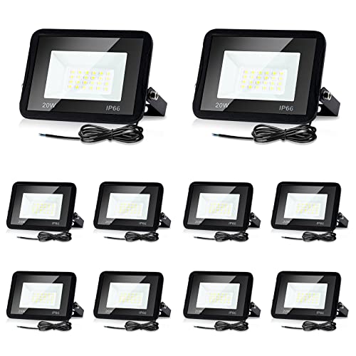 Lospitch 10PCS 20W LED-spotlight utomhus, IP66 vattentät, 1700LM superljus utomhusspotlight, 3000K kallvit strålkastare, utomhusspotlight för trädgårdar, innergårdar, garage, idrottsplatsdekoration