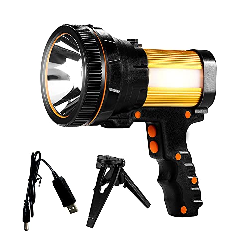 MAYTHANK Superljus kraftfull LED-ficklampa uppladdningsbar ficklampa stora 4 batterier 10 000 mAh slitstark spotlight handhållen söklampa hög effekt bärbar utomhus vattentät camping