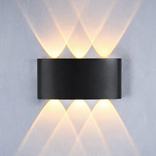 ZIKEY 6W LED vattentäta vägglampor, Modern vägglampa i aluminium, Varmt ljus 3000K, upp och ner spotlight inomhus/utomhus vägglampa, AC 85-265V (svart)