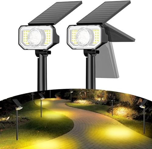 Quntis Solar Spotlight för Utomhus med 2 linser, 26 + 1 LED Solar Lampor för Utomhus 2 st, Varmvit, IP65 vattentät trädgård Spotlight, Solar Lights Garden, Vägglampa för Balkong terrass Walkway House