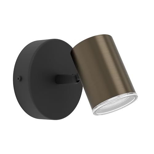 EGLO vägglampa Consuma 1, badrumslampa med vridbar spotlight, sovrumslampa i svart och brons metall, badrumslampa med GU10-sockel, IP44