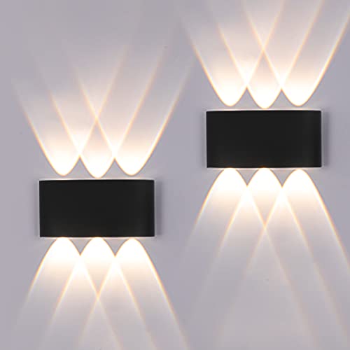 FUPE 2-pack Utomhus/inomhus LED-vägglampa utomhus 12 W 1 200 lm ip65 modern vattentät aluminium upp och ner spotlight vägglampa (svart 3 000k varmt ljus)