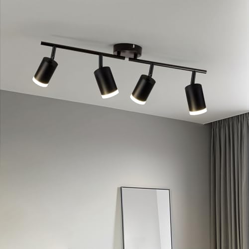 wowatt Taklampa med 4 runda spotlights, svängbara takspotlights, GU10, modern spot- och ramp, svängbar takbelysning, svart vägglampa för kök, vardagsrum, sovrum (ingen glödlampa)