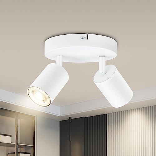 BOYIR Taklampa GU10 Taklampa med 2 spotlights, vit svängbar, modern armatur, inomhusbelysning, takbelysning för kök, sovrum, vardagsrum, hall, glödlampa ingår ej