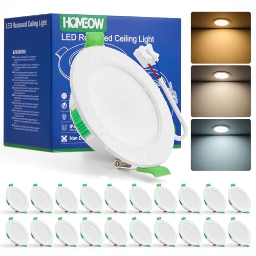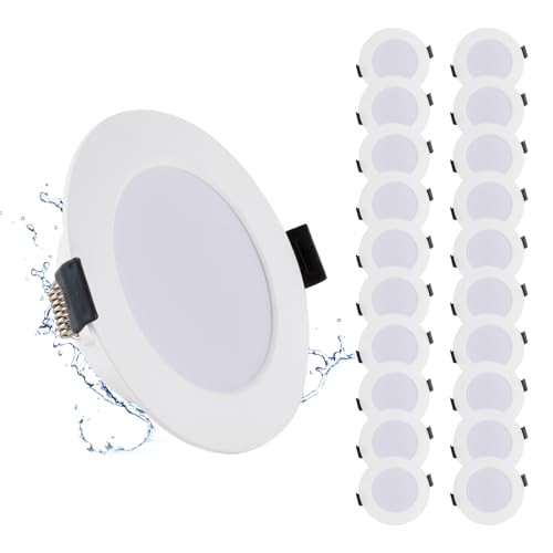 HOMEOW Set med 20 infällda LED-spotlights, extra platt, 5 w infälld LED-spotlight, 68 mm, 78 mm, varmvit, 2 700K, neutral vit, 4 000K, kall vit, 6 000K, IP44 badrumsplats, för kök