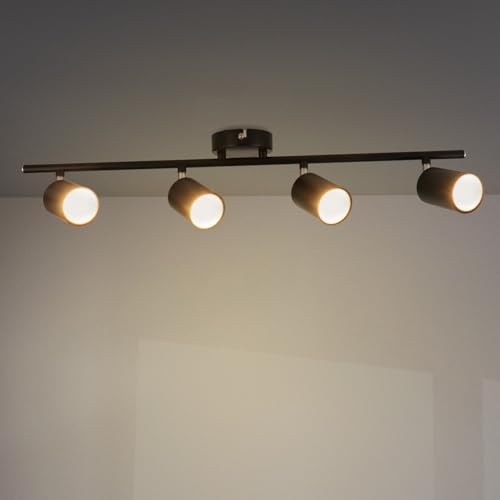 Leselux Taklampa med 4 svängbara LED-spotlights, modern svart takspotlight, spotlights taklampa och spotskenor, vägglampa GU10 för vardagsrum, kök, sovrum (utan glödlampa)