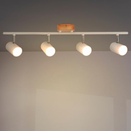 Dehobo GU10 LED taklampa med 4 LED-spotlights - modern Orientabl spotlight, vit, för hall, vardagsrum, matsal, kök - utan glödlampa