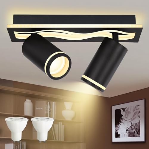 wowatt LED-taklampa, 2 svängbara spotlights, GU10, 2 svängbara spotlights, kök, taklampa, svart LED-vägglampa för kök, vardagsrum, sovrum (utan glödlampa)