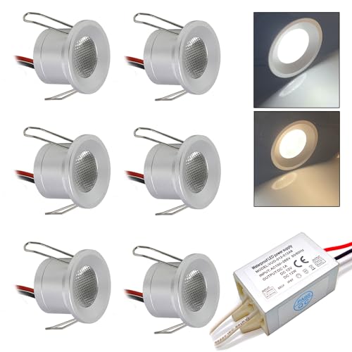 kpslucerna Små LED-spotlights, 2 W, DC 12 V, infällda minispotlights för tak och skåp, 6 stycken IP65-taklampor för kök, trappor, vitrinskåp, hall kall vit belysning