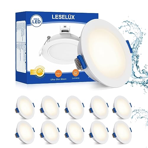 Leselux LED-spotlight platt IP65, 10 x LED Spot 230 V 5 W infällbara spotlights 4000 K neutral vit 400 lm, infällda spotlights 68 mm, takspotlights vit ultratunn 35 mm för badrum sovrum kök