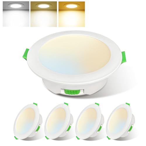 ALUSSO LIGHTING LED infälld spotlight 230 V dimbar platt, spotlights 6 W 68 mm med avtagbar modul, 3 CCT varmvit naturvit kall vit IP44 infällda lampor, takspotlights för badrum kök, set om 6
