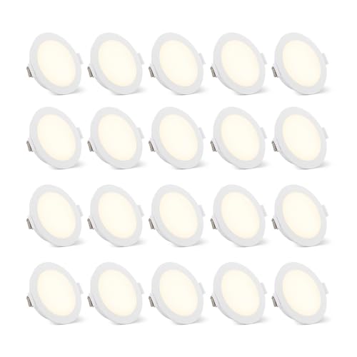 HOMEOW Set med 20 infällbara LED-spotlights, 230 V, 5 W, 400 lm, hålstorlek 68 mm, 80 mm, IP44 varmvit, neutralvit, kallvit, takspotlight, 24 mm, ultraplatt, infällda lampor för badrum, kök