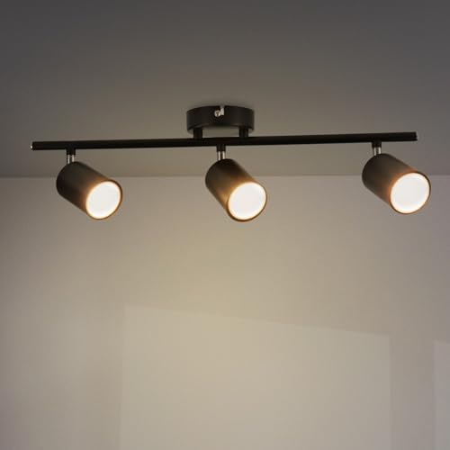 Dehobo takspotlight inomhus i matt svart, 3 justerbara spotlights GU10 Industrial 3 Way Light takspotlight för kök Lounge Sovrum Matsal