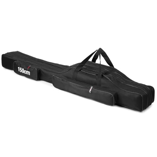 Sunydog 150 cm 3 lager fiskespöväska, bärbar vikbar spöväska, fiskerulle, tackle, förvaringsväska, väska, svart, 150 cm