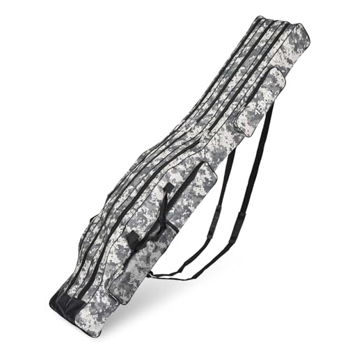 Dokeno spöväska 150 cm 3 lager bärbar fiskespöväska, vattentät spöväska, fiskeväska, fodral med bärrem för fiskespön, håv, spöhållare och fiskespöverktyg, Kamouflage, spöväska