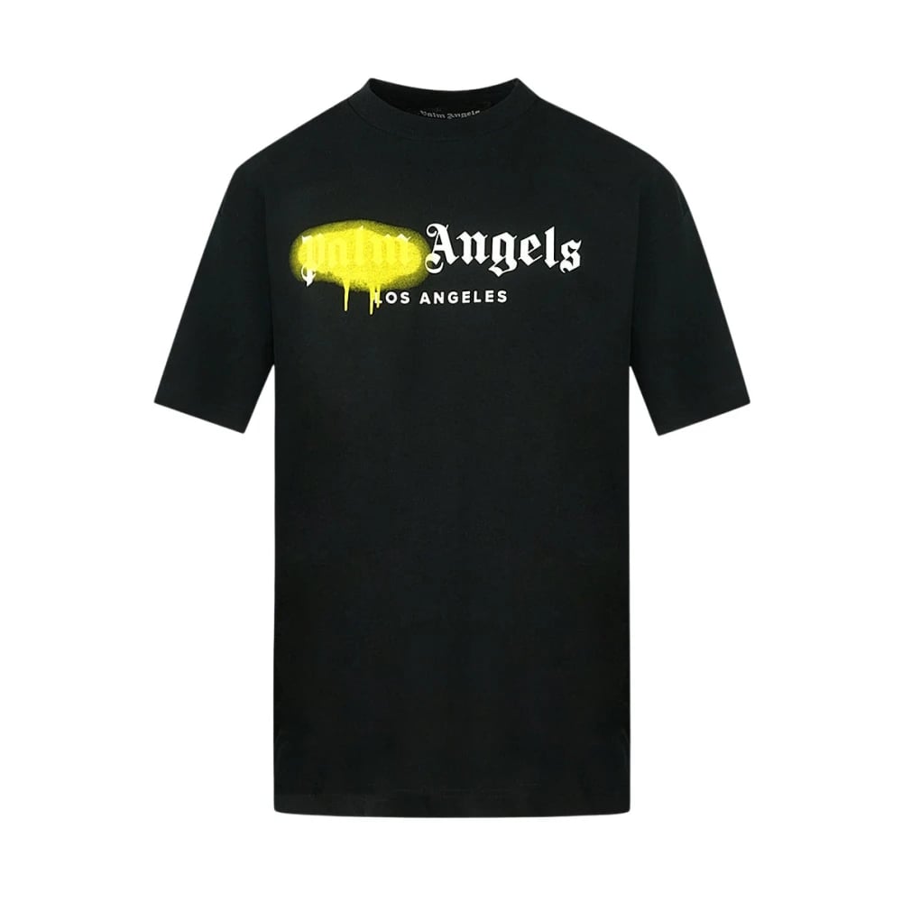Palm Angels, Toppar , Herr, L, Bomull, LA Spray Paint Logo Svart T-shirt