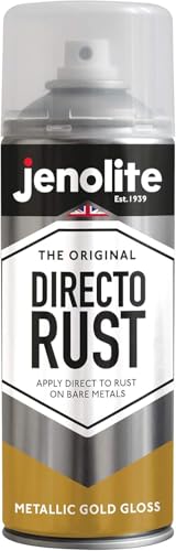 JENOLITE Directorust metallisk glansig sprayfärg | GULD | 400 ml | Multi-Surface guldsprayfärg för metall, trä, plast | All-In_OnePrimer, underrock och topplack | Interiör & exteriör