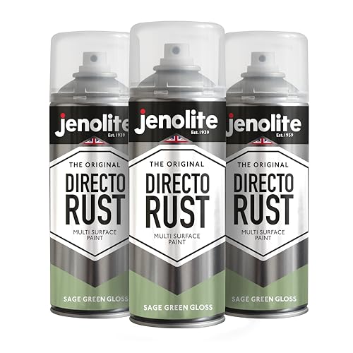 JENOLITE Directorust Gloss sprayfärg | Salvia GRÖN | 3 x 400 ml | Direkt till rostsprayfärg för metall | Multi Surface Gloss sprayfärg för trä, metall, plast, keramik | RAL 7494C