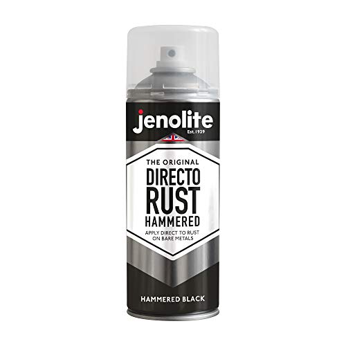 JENOLITE Directorust hamrad metallsprayfärg | SVART | 400 ml | sprayfärg för flera ytor för metall | Hamrad ytfärg | allt-i-ett-primer, underull och topplack | applicera direkt på rost