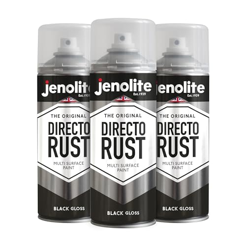 JENOLITE Directorust Gloss Sprayfärg | Svart | 3 x 400 ml | Direkt till rostsprayfärg för metall | Multi Surface Gloss Sprayfärg för trä, metall, plast, keramik | RAL 9005
