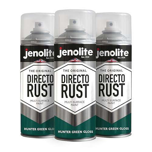 JENOLITE Directorust Gloss sprayfärg | Hunter Green | 3 x 400 ml | Direkt till rostsprayfärg för metall | Multi Surface Gloss sprayfärg för trä, metall, plast, keramik | RAL 6028