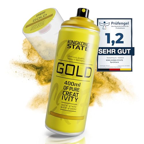 King Kong State Premium sprayfärg guld glänsande – högtäckande sprayfärg för gör-det-själv-området, lämplig för alla ytor; spraylack tillverkad i Tyskland, sprayburk 400 ml (guldglansig)