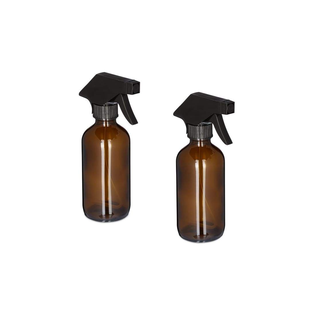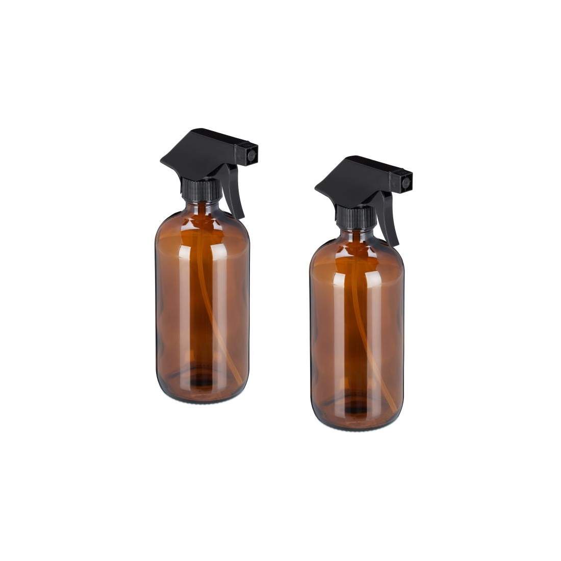 Relaxdays Sprayflaska glas, 2 x 500 ml, set, påfyllningsbar, dimma och stråle, hårvård, rengöring, spridare, tom, brun