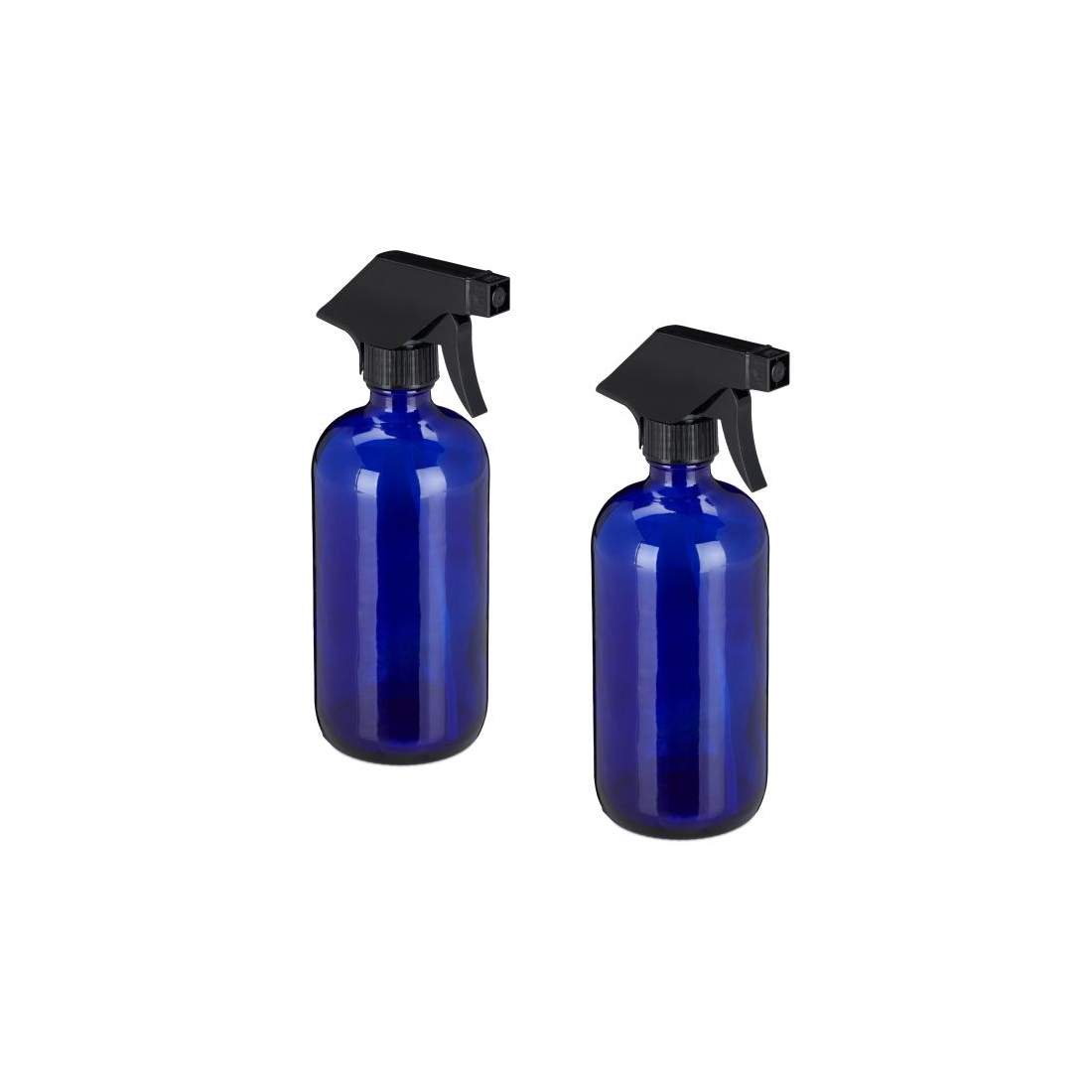 Relaxdays Sprayflaska glas, set om 2, 500 ml, påfyllningsbar, dimma och stråle, hårvård, rengöring, sprejflaska, tom, blå, 10034197