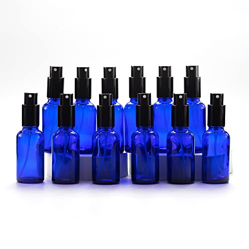 Yizhao Blå Sprayflaska Glas 30ml, med Liten Fin Dimma-spray, Metalllock, Påfyllningsbara för Eterisk Olja, Resa, Rengöring, Parfym, Aromaterapi, Mmakeup – 12 Stycken