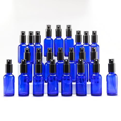 Yizhao Blå Sprayflaska Glas 30ml, med Liten Fin Dimma-spray, Metalllock, Påfyllningsbara för Eterisk Olja, Resa, Rengöring, Parfym, Aromaterapi, Mmakeup – 24 Stycken