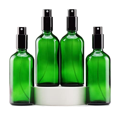 Yizhao Grön Sprayflaska Glas 100ml, med Liten Fin Dimma-spray, Metalllock, Påfyllningsbara för Eterisk Olja, Resa, Rengöring, Parfym, Aromaterapi, Mmakeup – 4 Stycken
