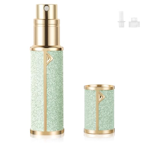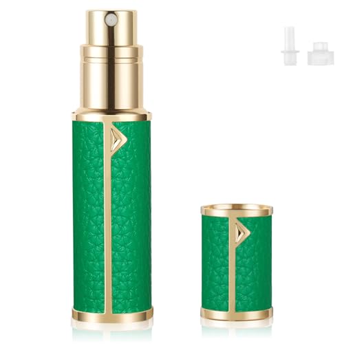 LOPHE Mini bärbar sprayflaska, påfyllningsbar parfymförstärkare 5ml, tom parfymförstärkare för resor, bärbar sprayflaska för reseväska på språng, PU (grön)