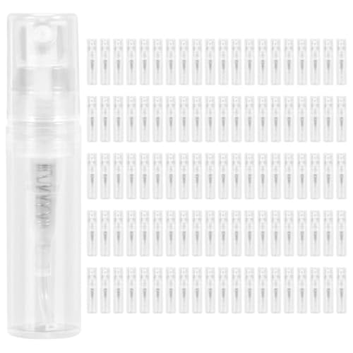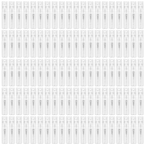Huerous 100 stycken 2 ml tom parfymsprejflaska – mini fin dimma sprayflaskor transparent – påfyllningsbar sprayflaska för parfym och kroppsvård – perfekt för doftprover och resor