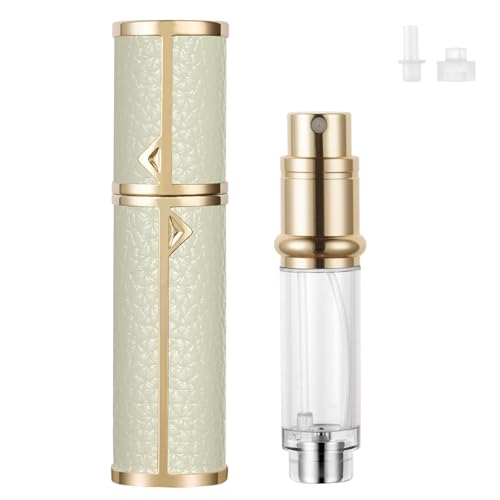 LOPHE Mini bärbar sprayflaska, påfyllningsbar parfymförstärkare 5ml, tom parfymförstärkare för resor, bärbar sprayflaska för reseväska på språng, PU (vit)
