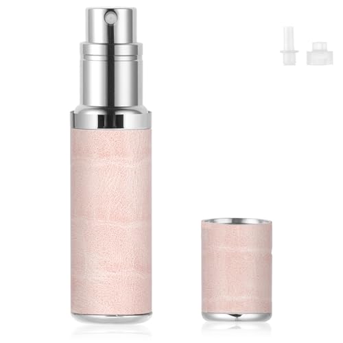 LOPHE Mini bärbar sprayflaska, påfyllningsbar parfymförstärkare 5ml, tom parfymförstärkare för resor, bärbar sprayflaska för reseväska på språng, PU (korsmönster rosa)