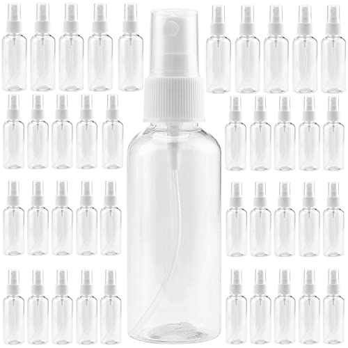 PINGEUI 40-pack 100 ml genomskinliga sprayflaskor, fin sprayflaska i plast med lock, tomma mini påfyllningsbara sprayflaskor för resor, toner, väsentlig, vatten