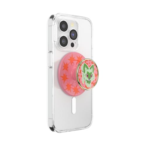 PopSockets Telefongrepp för MagSafe med stativ, magnetiskt stativ, utbytbar topp, säkert grepp för iPhone MagSafe-fodral, telefon- och surfplattegrepp, Pokémon-gräs typ – Sprigatito Stretch