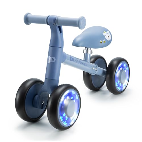 Kinderkraft Springcykel Cutie, inlärningscykel, barnbalanscykel utan pedaler, hjul med LED-lampor, modern design, säker konstruktion, för barn från 1 år, blå