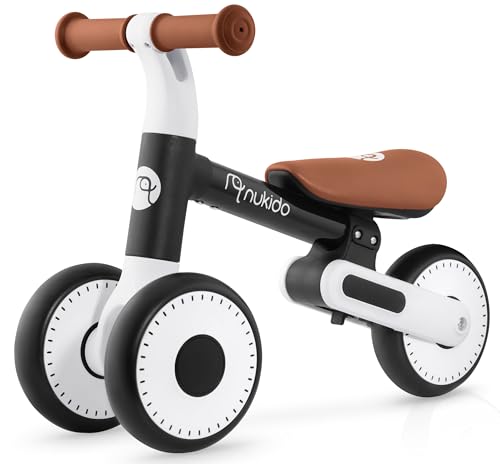 Nukido Springcykel från 1 år trehjuling barntrehjuling barncykel höjdjusterbar gåhjälp cykel skumdäck svart vit brun