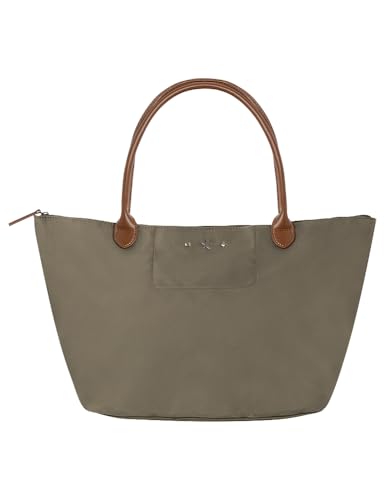 Springfield Khaki Nylon Bag med små metalltrims, damväska, khaki, en storlek