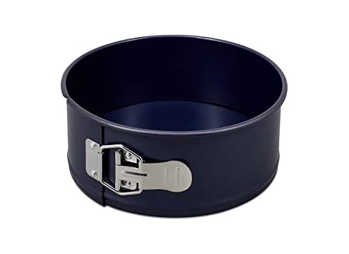 Zyliss Non-stick springform kakburk med lös bas, 20 cm/8 tum, Pfann-fritt kolstål, lätt att rengöra, mörkblå, rund bakplåt/panna, bakredskap för luftfritös, kakform, diskmaskinssäker
