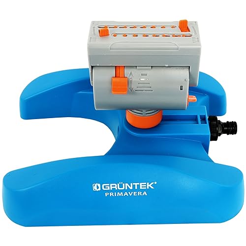 GRÜNTEK Sprinkler för Gräsmatta upp till 462 m2 för stora gräsmattor med TURBO-motor, fyrkantig sprinkler gräsklippare med variabel bredd, största bevattningsyta