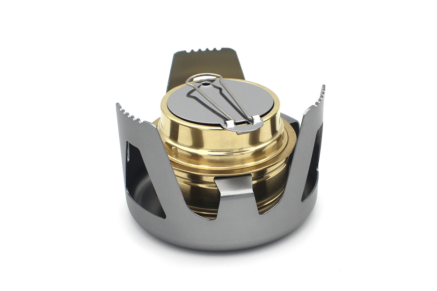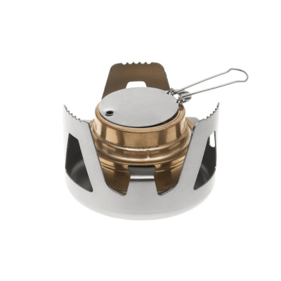 Foppla bärbar alkoholspis – mini ryggsäcksspis med spritbrännare i mässing och aluminiumstativ för camping och vandring